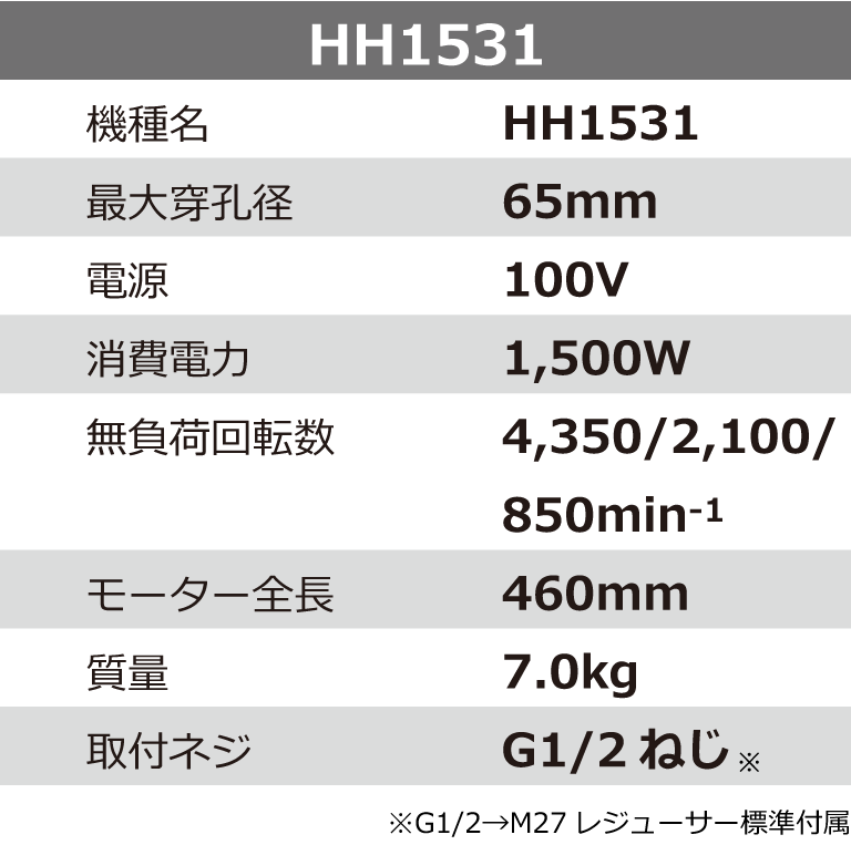 変速L(回転数850min-1)で手持ちでの穿孔はしないで下さい